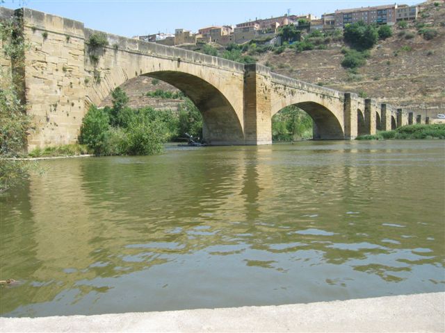 Sin embargo, los restos más antiguos que se han encontrado son del XIII y de estilo románico. En origen tendría un total de 13 arcos y dos torres defensivas, una en la mitad del puente y la otra en el extremo más cercano al pueblo. Sin embargo, como es una construcción que tiene mucho desgaste, se han ido haciendo remodelaciones a lo largo de los siglos, lo que explica la variedad de formas y tamaños en los arcos y pilares. En 1775, una crecida del Río Ebro arrasó el puente y cuando se iniciaron las obras de reconstrucción en 1780 aparecieron los restos medievales. Más tarde, en 1845, vuelve a aparecer mencionado el puente en los documentos indicando que se estaba reedificando nuevamente.