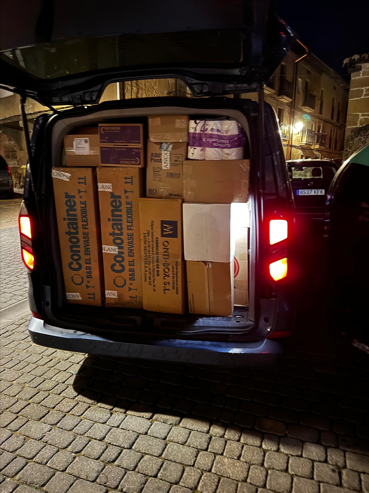 Los y las vecinas de San Vicente de la Sonsierra, una vez más, han demostrado su solidaridad y han hecho llegar más de 3000 kilos de alimentos no perecederos, incluida comida sin gluten apta para personas celíacas, productos y materiales de limpieza (lejía, friega suelos, escobones, botas de goma, guantes, mascarillas, buzos, etc.), productos de higiene personal (compresas, empapadores, toallitas, geles, cepillos de dientes...), medicamentos varios y productos infantiles (pañales, potitos, leche infantil...).