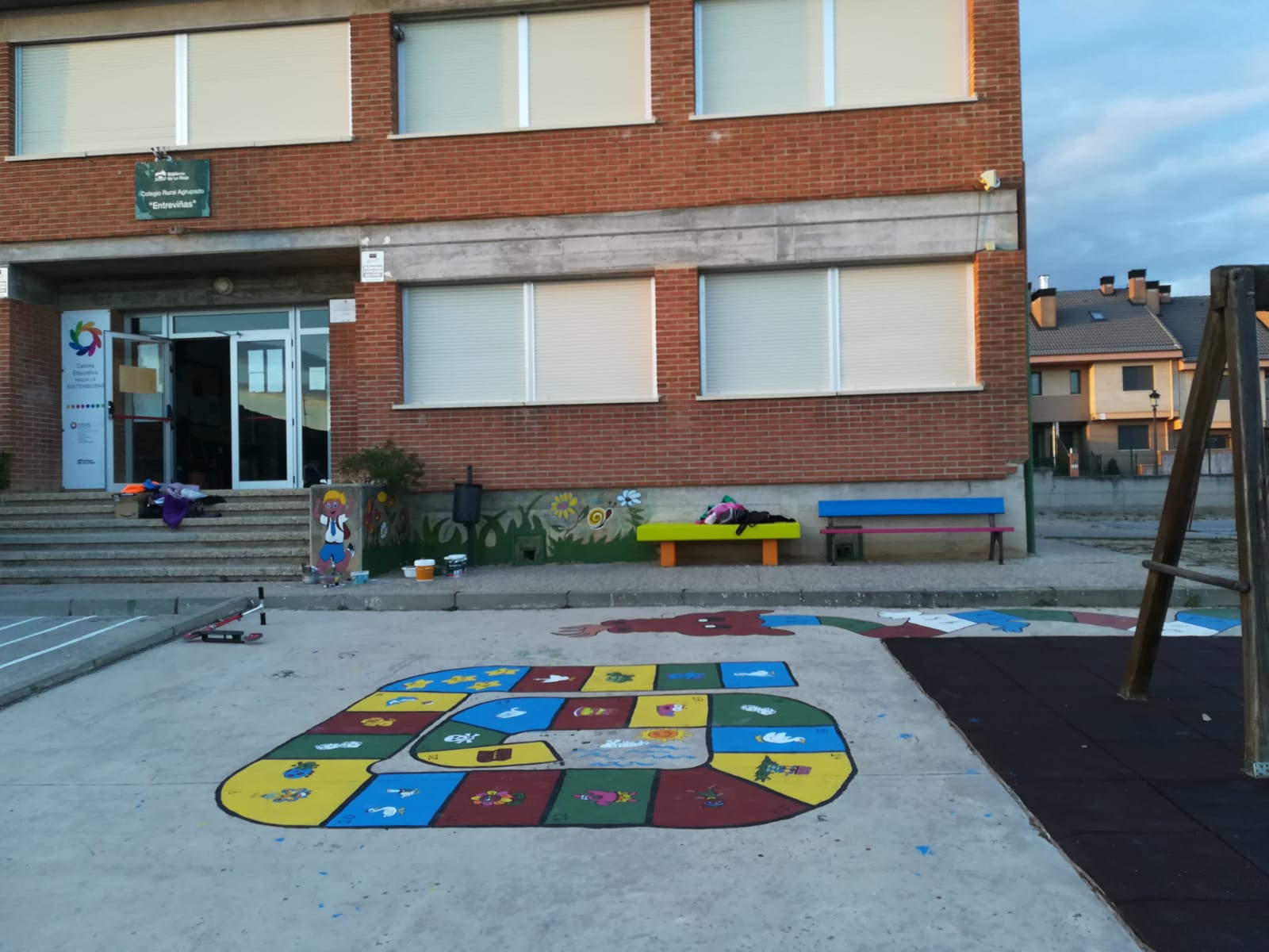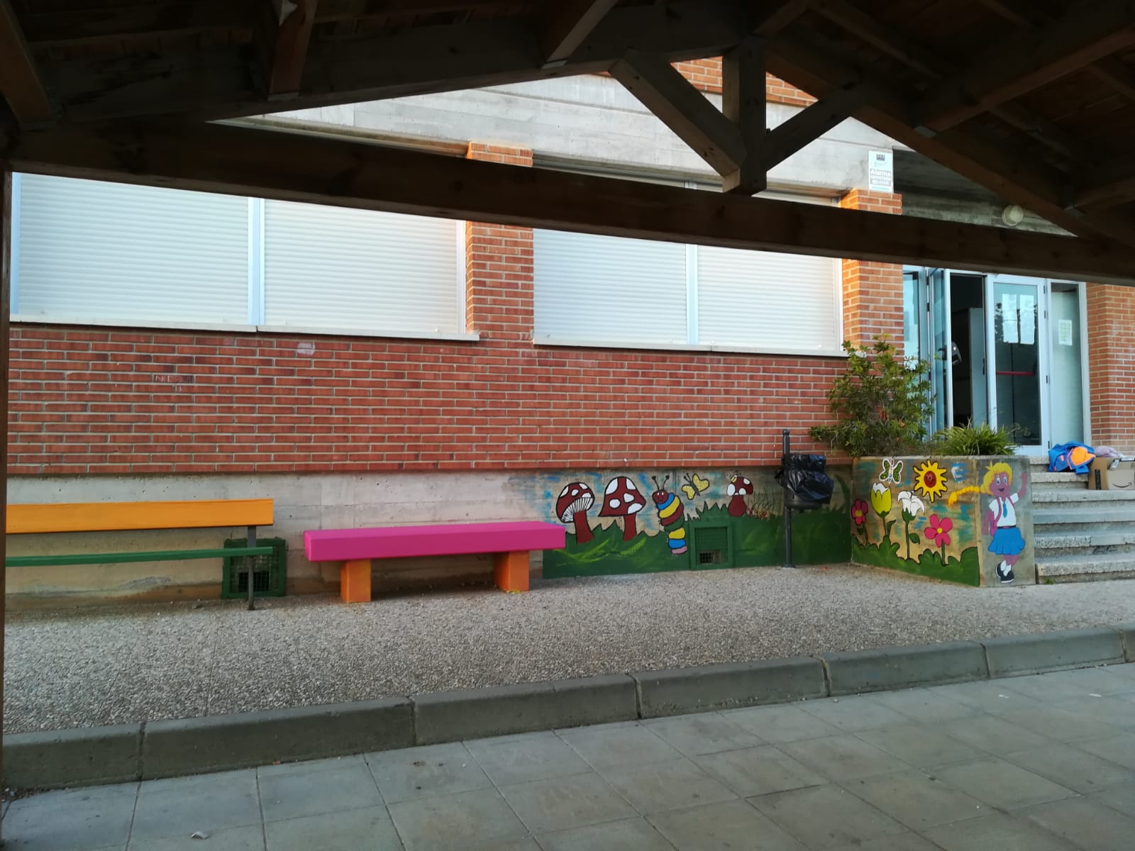 Por otro lado este ayuntamiento está colaborando con la iniciativa que está llevando a cabo este curso escolar el Ampa San Vicente para la mejora del patio escolar. Voluntari@s de esta asociación, junto a sus hijos, han llenado de color el patio escolar y han construido un arenero con los fondos recaudados en diversos eventos. El ayuntamiento ha aportado la pintura necesaria y ha instalado dos mesas de picnic.
