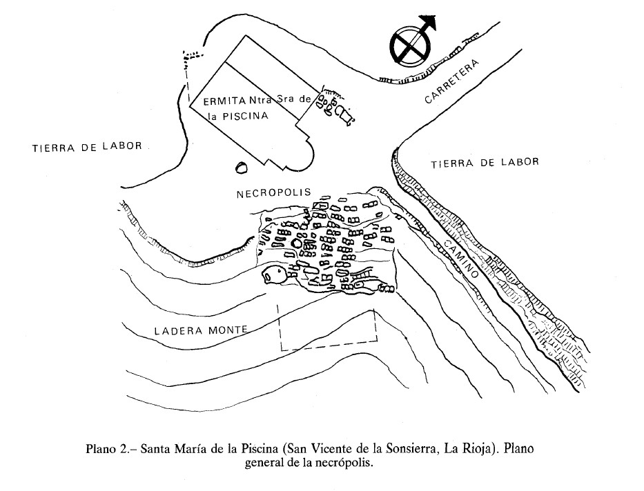 - Imagen del estudio de: Loyola E. y Andrío J. Informe sobre las excavaciones arquológicas realizadas en el término de Santa María de la Piscina. Berceo nº97. Instituto de Estudios Riojanos, 1979, pp-121-126.