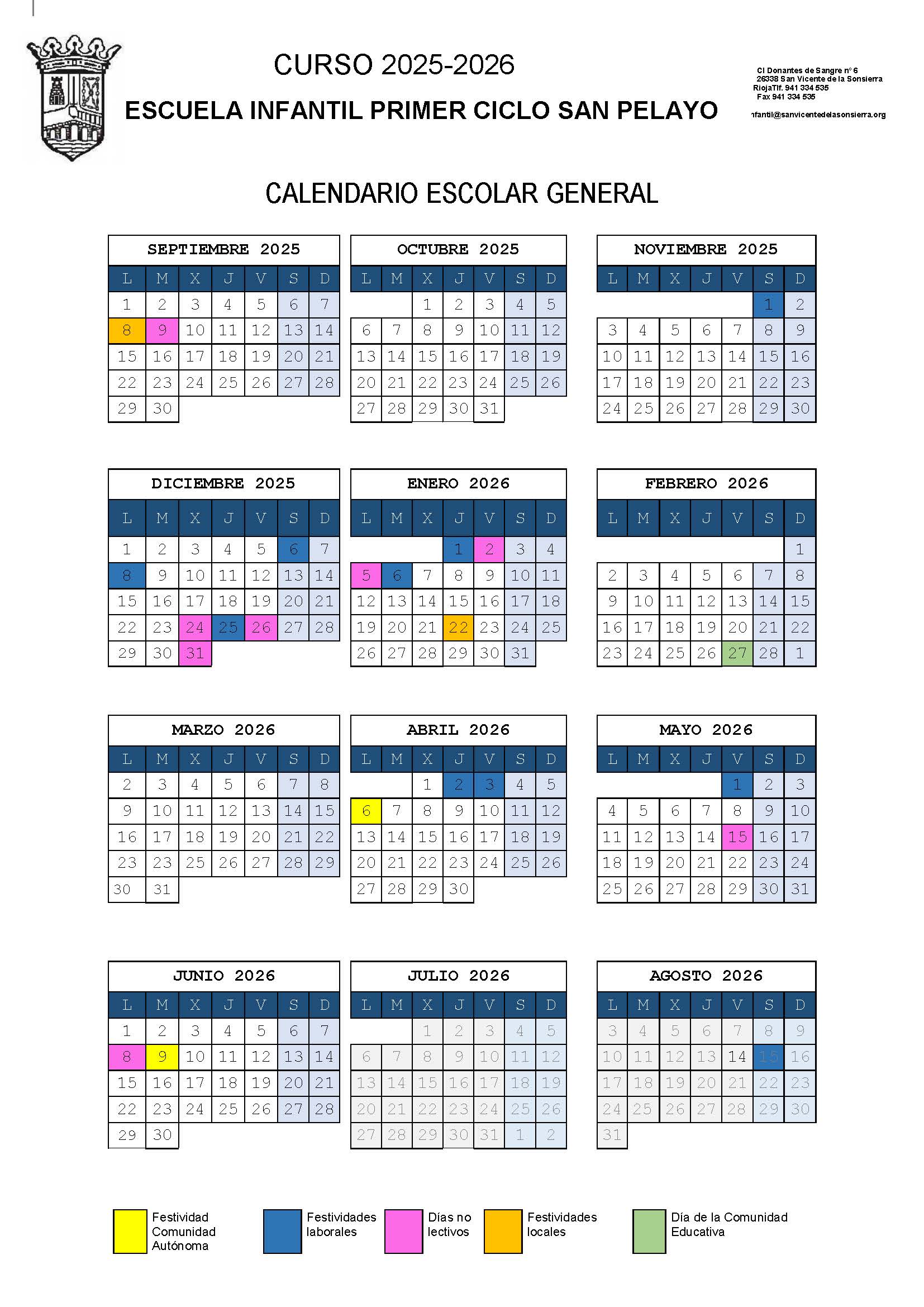 Calendario Curso Escolar 2025/2026